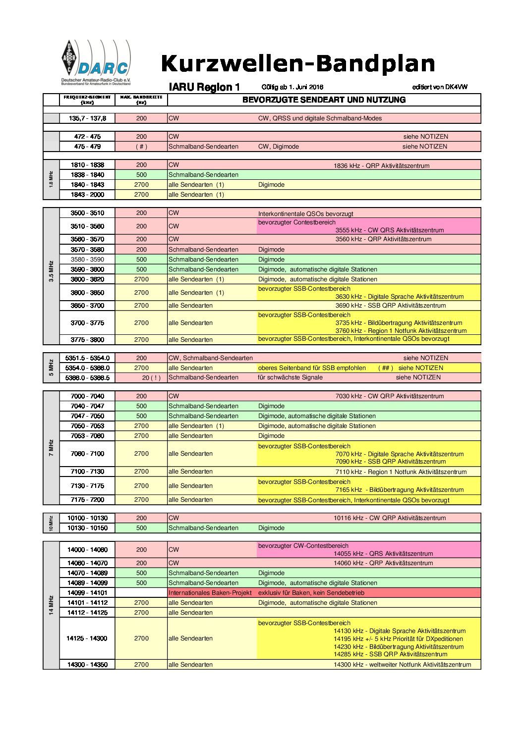 Frequenzzuweisungen und Bandpläne für den Amateurfunkdienst.